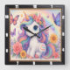 Relógio Quadrado Arco-íris Unicórnio Flor Menina