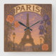 Relógio Quadrado Art Nouveau Paris Eiffel Tower Floral