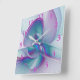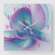 Relógio Quadrado Arte Fractal Turquesa Azul Cor-de-Rosa Moderna