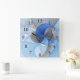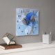 Relógio Quadrado Arte Gráfica Abstrata Moderna Azul Cinza Fractal