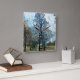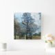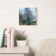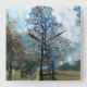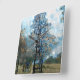 Um design de arte de outono de uma árvore de abetos e uma pessoa desfrutando de paz e tranquilidade.