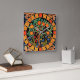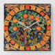 RELÓGIO QUADRADO ÁRVORE LARANJA COM FOLHAS VERDE, FLORES