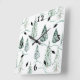 Relógio Quadrado Árvores natalinas de aquarela. Floresta de inverno