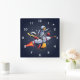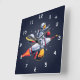 Relógio Quadrado Astronauta Divertido Voando Através Da Ilustração