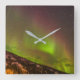 Relógio Quadrado Aurora Borealis | Montanhas Fairbanks Alaska