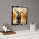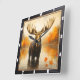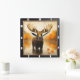 Este atordoante relógio de parede quadrada mostra uma majestosa alça em pé calmamente em um lago sereno, cercada por uma vibrante floresta de outono com árvores enfeitadas em ouro e na folhagem laranja. Folhas de queda flutuantes na superfície da água completam esta pacífica e rústica cena da natureza, perfeita para decor de chaleira ou de cabana.