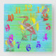 Pássaros tropicais em pano de fundo multisombra. Atualize sua casa, chalé, área do pátio ao ar livre com um toque de verão. Pássaros Tropicais, pano de fundo multicolorido e números de relógio coloridos.