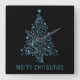 Fundo Preto e Azul Metálico Brilhante Estrelas Azuis Árvore de Natal Relógio de Paredes Elegante com Texto Feliz Natal, você pode mudar o texto