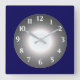 Relógio Quadrado Azul Profundo com Cinza de Prata Iluminada