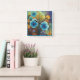 Relógio Quadrado Azul vibrante e Design Floral laranja