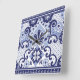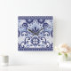 Relógio Quadrado Azulejo de Arte Folclórica Mexicana Azul e Branco