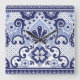 Este design de relógio de parede apresenta um padrão tradicional de azulejo do estilo talavera mexicano, azul e branco.