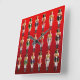 Estes soldados de brinquedo engraçados do nutcracker em uniformes do hussar, com chapéus engraçados, barbas brancas spiky e os bigodes pretos longos sobre um fundo vermelho quente trarão a um sorriso em qualquer um a cara!