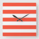 Relógio Quadrado Bandas de Cadeira Vermelha e Branca