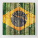 Relógio Quadrado Bandeira brasileira enfeitiçada em fundo de madeir