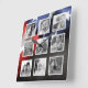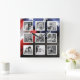 Crie sua própria colagem de 9 fotos personalizada com moldura branca no relógio de parede de colagem de fotos do Instagram com suas imagens personalizadas em um fundo moderno da bandeira dos EUA. Adicione suas fotos, designs ou obras de arte favoritas para criar algo realmente único. Para editar este modelo de design, simplesmente carregue sua própria imagem conforme mostrado acima. Trate-se bem ou faça o presente perfeito para familiares, amigos, pais e avós!