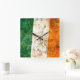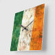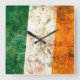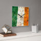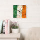 Este artigo tem uma bandeira Tricolour irlandesa afligida do estilo em um leve ângulo. A bandeira tem bares verdes, brancos e alaranjados verticais em uma textura áspera.