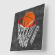 Design personalizado do basquetebol e da aro em uma obscuridade e luz - fundo cinzento do design do quadro com um teste padrão de termos do basquetebol. Apenas personalize o nome para adicionar o nome do fã do basktball, do jogador de basquetebol ou do treinador de beisebol. Ideal para jogadores do netball demasiado!