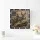 Este relógio de parede único destaca um grande baixo saltando da água, com um veado majestoso sutilmente no fundo. Uma bandeira russa americana e textura de madeira completam o pano de fundo, criando uma mistura convincente de patriotismo e esportes ao ar livre. Ideal para caçadores, anglers, ou qualquer pessoa que aprecie a arte rústica da vida selvagem, este relógio serve como uma corajosa peça de declaração em qualquer sala.