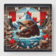 Relógio Quadrado Beaver canadense construindo uma barragem no outon