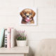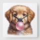 Arte em aquarela encantadora de um cachorrinho marrom soprando bolhas de chiclete. Ficaria ótimo em um berçário ou quarto de criança.