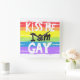 Este trabalho de arte apresenta um arco-íris colorido com a frase "Beije-me eu sou Gay".