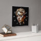 Um rosto belamente iluminado contra um fundo complementar.
