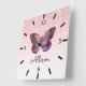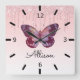 Relógio Quadrado Bela borboleta roxa personalizada