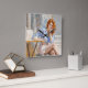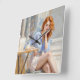 Relógio Quadrado Bela cabeleira vermelha sentada em um café, soft a