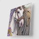 Relógio Quadrado Belo Cavalo Branco com Acentos Roxos e Dourados