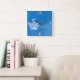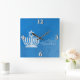 10,75" x 10,75" pulso de disparo acrílico com uma imagem de um menorah azul pálido e branco cobriram com uma estrela de David no azul sujo. Veja a coleção inteira do pulso de disparo de Hanukkah na seção dos FERIADOS.