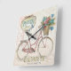 Relógio Quadrado Bicicleta Paris Com Flores Na Frente