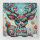 Relógio Quadrado Big Eye Christmas Reindeer Folk Art Personalized