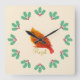 Relógio Quadrado Bird e Holly Berries Vermelhas e Cachos