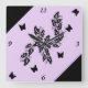 Relógio Quadrado black Butterfly on Purple