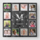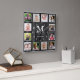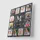 Relógio Quadrado Black Wood 12 Photo Collage Family Name Monogram