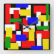 Relógio Quadrado Blocos vermelhos, amarelos, pretos, azuis e verdes