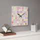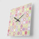 Relógio Quadrado Bloqueio de Parede Rosa Quadrado do Bolinhas