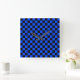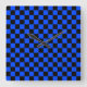 A blue and black checkerboard pattern fills the image, creating a uniform, alternating grid of squares, conveying a bold and geometric feel.