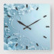 Relógio Quadrado Blue Decorative Floral Wall Clock