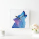 Relógio Quadrado Blue watercolor wolf howling