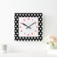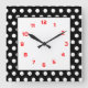 Relógio Quadrado Bolinhas brancas e vermelhas pretas