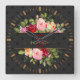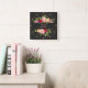 Relógio Quadrado Bolinhas Preta Moderna Chic e Rosas Personalizados
