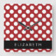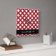 Relógio Quadrado Bolinhas Vermelhas, Padrão de Bolinhas, Seu Nome