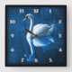 Relógio Quadrado Bonito cisne branco flutuando num lago azul
