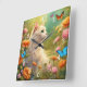 Relógio Quadrado Bonito gato branco em um jardim 713