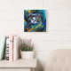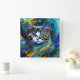 Relógio Quadrado Bonito Gato Místico em Blues e Goldes