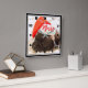 Um relógio com uma foto adorável de um filhote de cachorro dormindo enquanto veste um chapéu de Papai Noel vermelho. Feliz Natal está escrito na banda de seu chapéu, em uma moda manuscrita, nas cores festivas vermelho e verde. Luzes de Natal penduradas no topo criam fôlego de férias sazonal adicional.