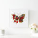 Relógio Quadrado Borboleta de flor vermelha com rosas vermelhas