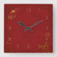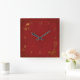 Relógio Quadrado Borboletas Elegantes Vermelhas e Douradas